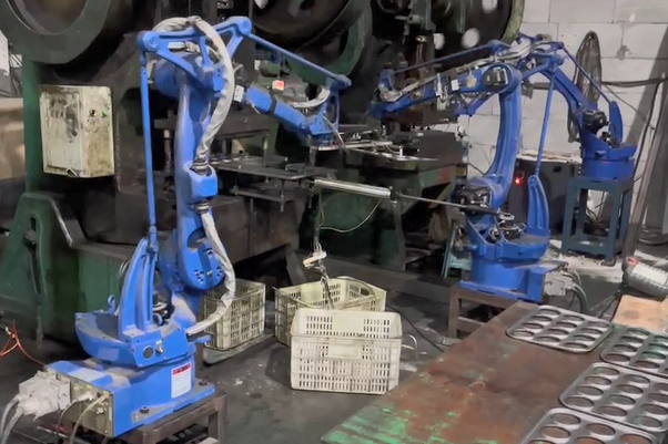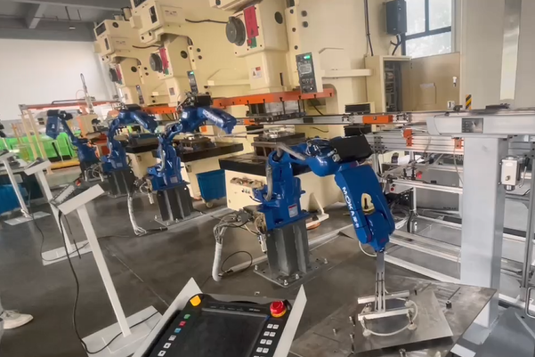 沖壓機(jī)器人是專門針對(duì)各種沖床與油壓機(jī)配置,高效替代人工沖壓作業(yè)并實(shí)現(xiàn)自動(dòng)上下料的一種多用途工業(yè)機(jī)器人。沖壓機(jī)器人具有靈活垂直升降、水平旋轉(zhuǎn)、水平軸伸縮、工件旋轉(zhuǎn)、工件翻轉(zhuǎn)等多自由度動(dòng)作,并可根據(jù)沖床高度、送料高度、下料高度自動(dòng)適應(yīng),最大程度滿足各種沖壓產(chǎn)品工藝要求,從而實(shí)現(xiàn)無(wú)人化自動(dòng)化智能工廠。沖壓機(jī)器人可以廣泛應(yīng)用于多種批量生產(chǎn)廠家,如金屬鈑金加工沖剪、成形、引伸。還有如交通車輛、鐘表、家電、文具、手工具、五金、電腦等產(chǎn)品沖壓加工,還可加裝自動(dòng)送料機(jī),從事自動(dòng)移送整條生產(chǎn)線加工。同時(shí)沖壓機(jī)器人可根椐企業(yè)自身實(shí)際需求選擇數(shù)控沖床、氣動(dòng)型精密沖床、三圓導(dǎo)柱高速精密沖床或肘節(jié)式連桿式高精密高速?zèng)_床等配套,各系列沖床設(shè)備在五金自動(dòng)化加工中應(yīng)用廣泛,已被眾多加工企業(yè)所認(rèn)可。
